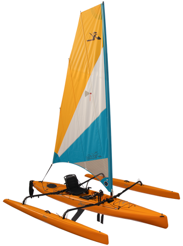 Ride the wind: A roller-furling, vertically battened mainsail provides lift, a retractable centerboard prevents lateral slip, and the larger amas tuck parallel against the rotomolded polyethylene hull for docking. Multiple hatches, on deck stowage and Vantage CT Seating encourage multi-day adventures, and the forward and reversing MirageDrive 180 with Glide Technology and Kick-Up Fins offers paddle-free locomotion when the wind scatters, making it easy to get home. The “AI” is also an exceptional bluewater-capable fishing platform. Equip the accessory trampoline kit for extra space and walk-around capability.